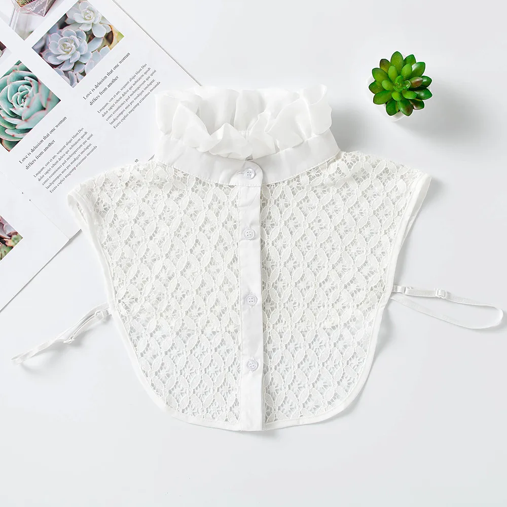 Шифоновая рубашка с ложным съемным ложным воротником, аксессуары для женщин, плиссированный Поддельный Воротник, весенний свитер, белая кружевная рубашка с воротником