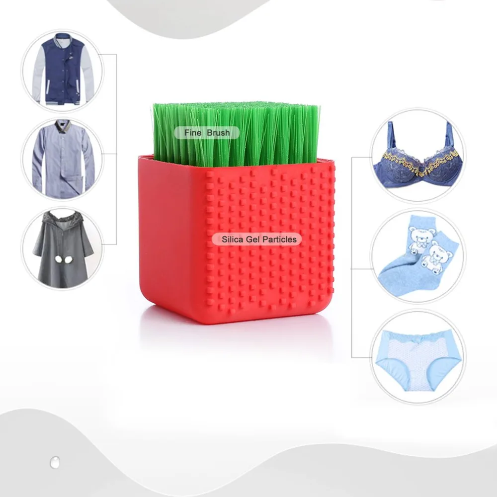 Внешний силиконовый материал, скраб разнообразную одежду, не вредит ткани.