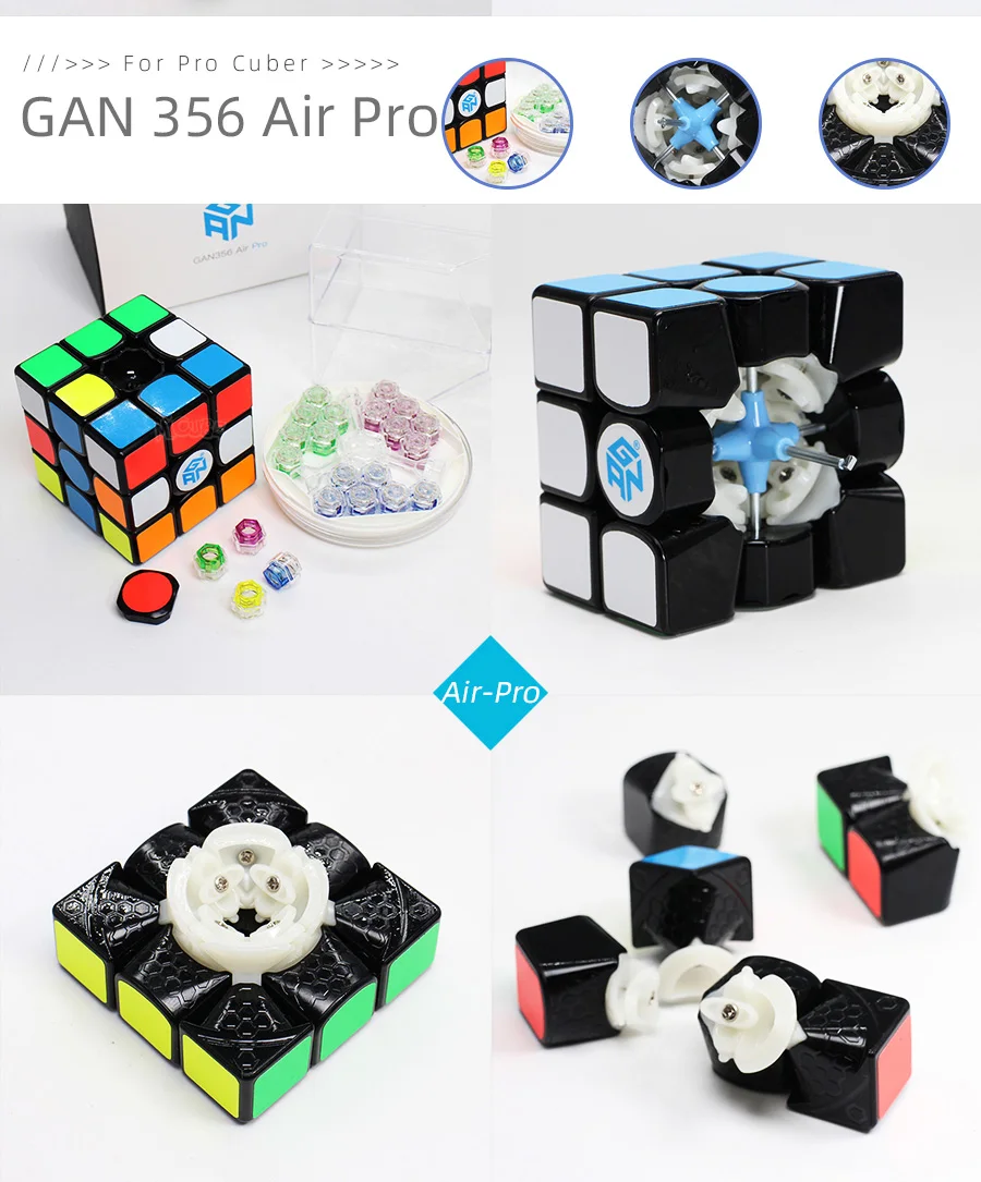 3. Характеристики: Цвет корпуса: черный Материал: АБС-пластик [Air S] Размер кубика: 56х56х56мм Вес нетто: 69 г. Вт: 152 г [Air Sm] Размер кубика: 56х56х56мм Вес нетто: 76 г. Вт: 208 г Внимание![S] ,[SM]: Эти 2 стиля имеют некоторые отличия вНаклейки и подарки. Флуоресцентный [GANS 354 M]-Магнитный куб:Подходит дляWCA конкурент