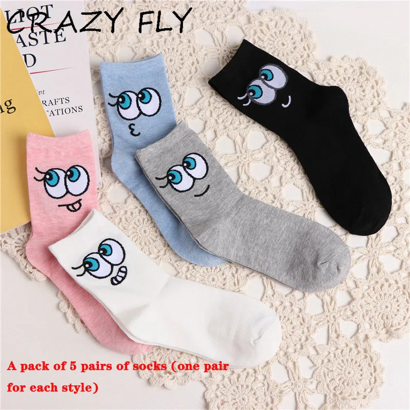 Магазин CRAZY FLY 2018 милые носки с героями мультфильмов женские художественные хлопковые носки забавные большие глаза Kawaii дизайнерские сумасшедшие смешные носки Харадзюку для женщин Новинка