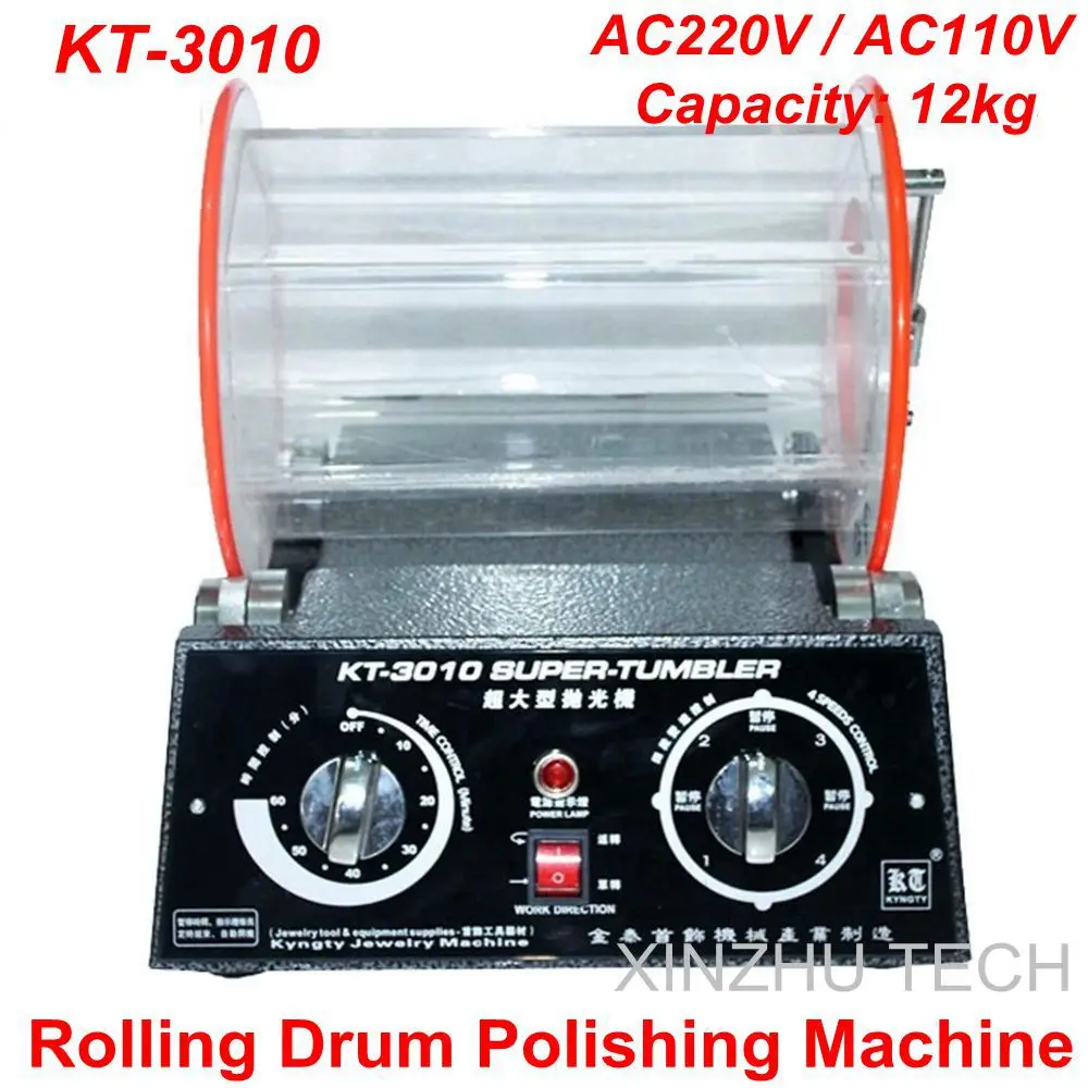 KT-3010 сверлильный барабан, полировальный станок для ювелирных изделий, Вибрационный стакан, баррель, роторная шлифовальная машина, ювелирный полировщик, емкость 12 кг