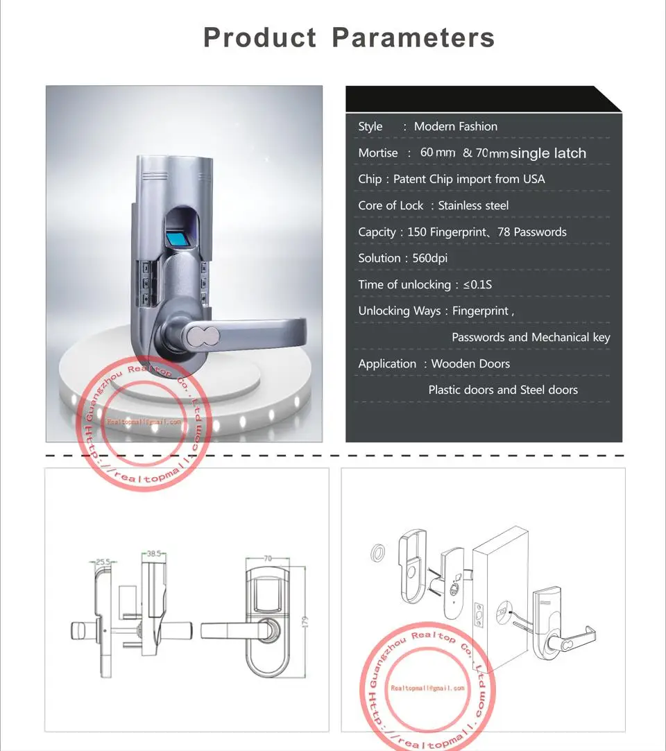 Этот вид замка отлично удобен в посадке, прост в использовании отпечатков пальцев. Идеально подходит для внутреннего контроля доступа в офисах или домах!