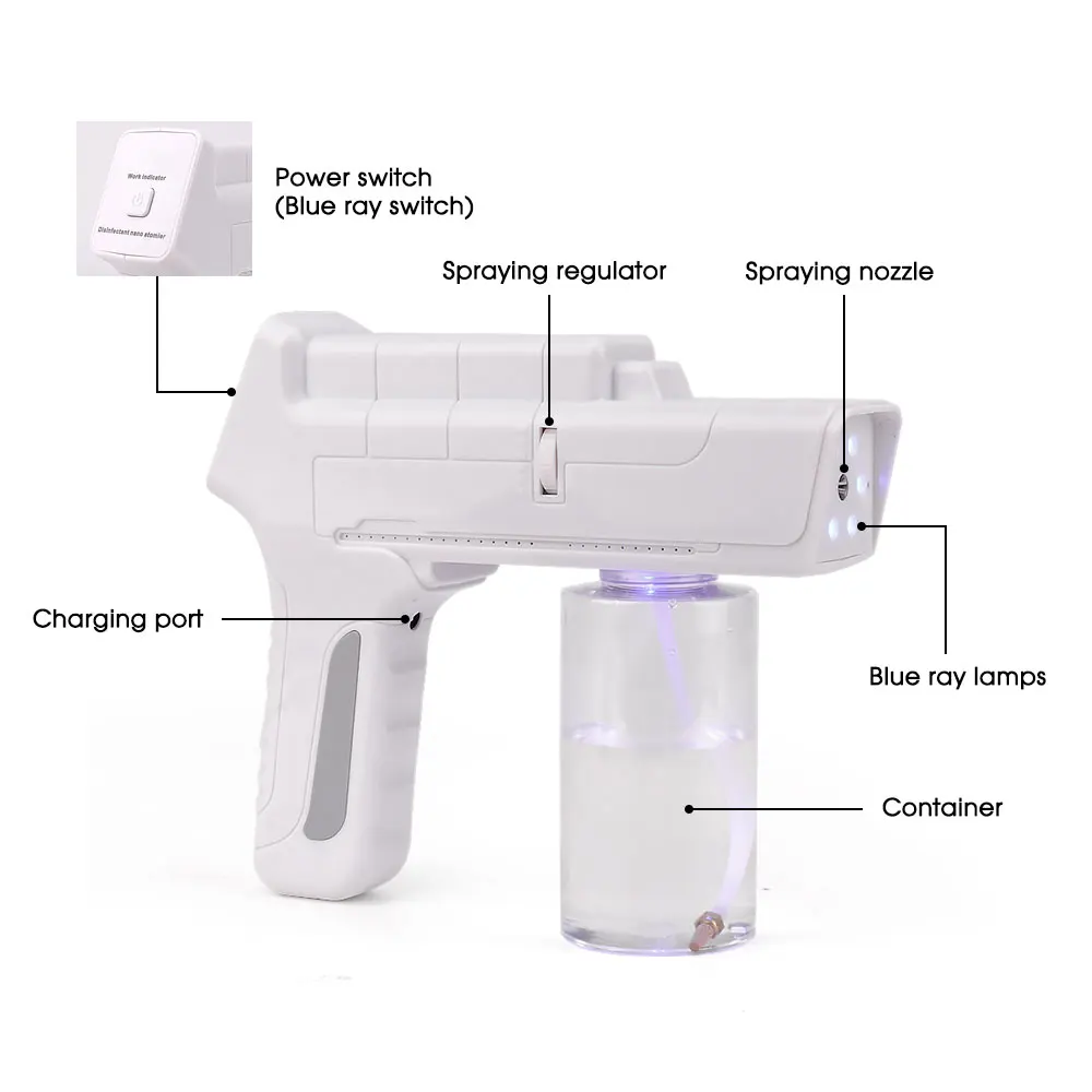 3. Распыление комнатной температуры-безопасно для распыления спирта и различных разбавленных дезинфицирующих средств.