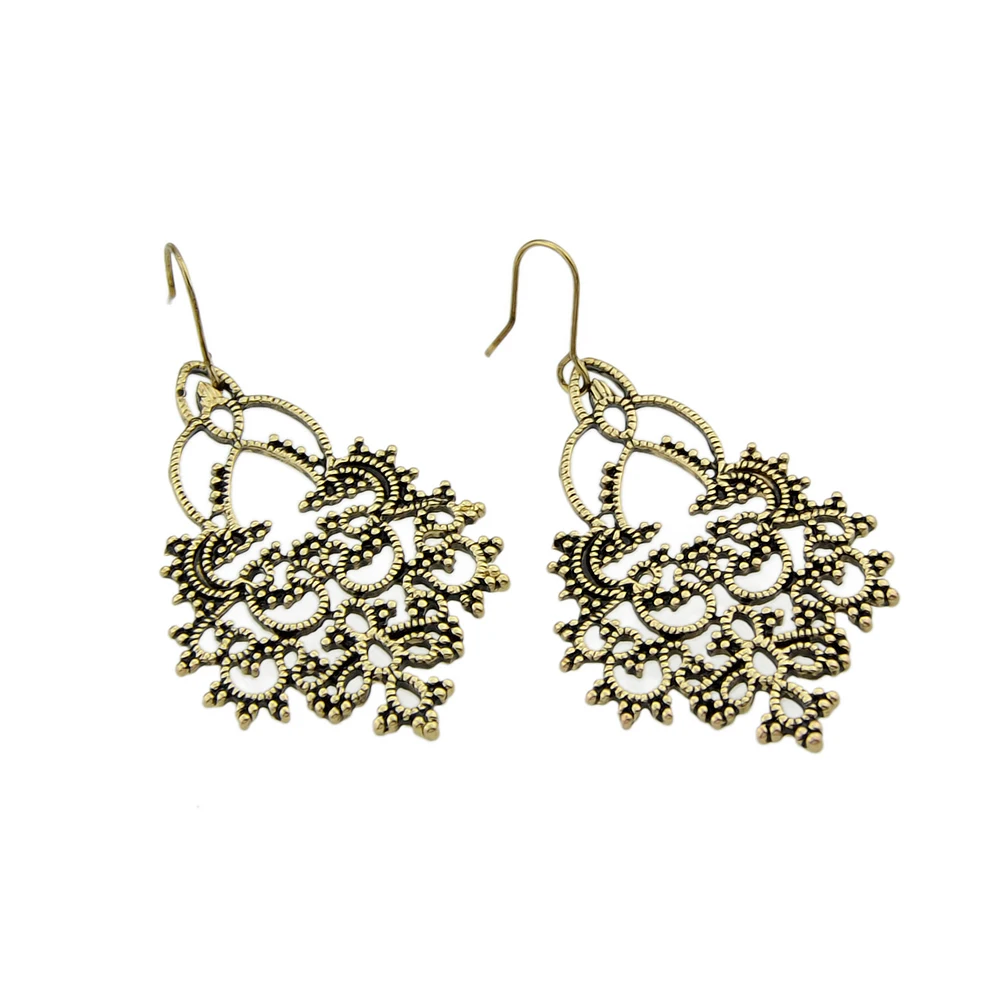 Винтаж Стиль Аксессуары Античное золото серебряный цвет с геометрической формы Висячие серьги для женщин модные украшения
