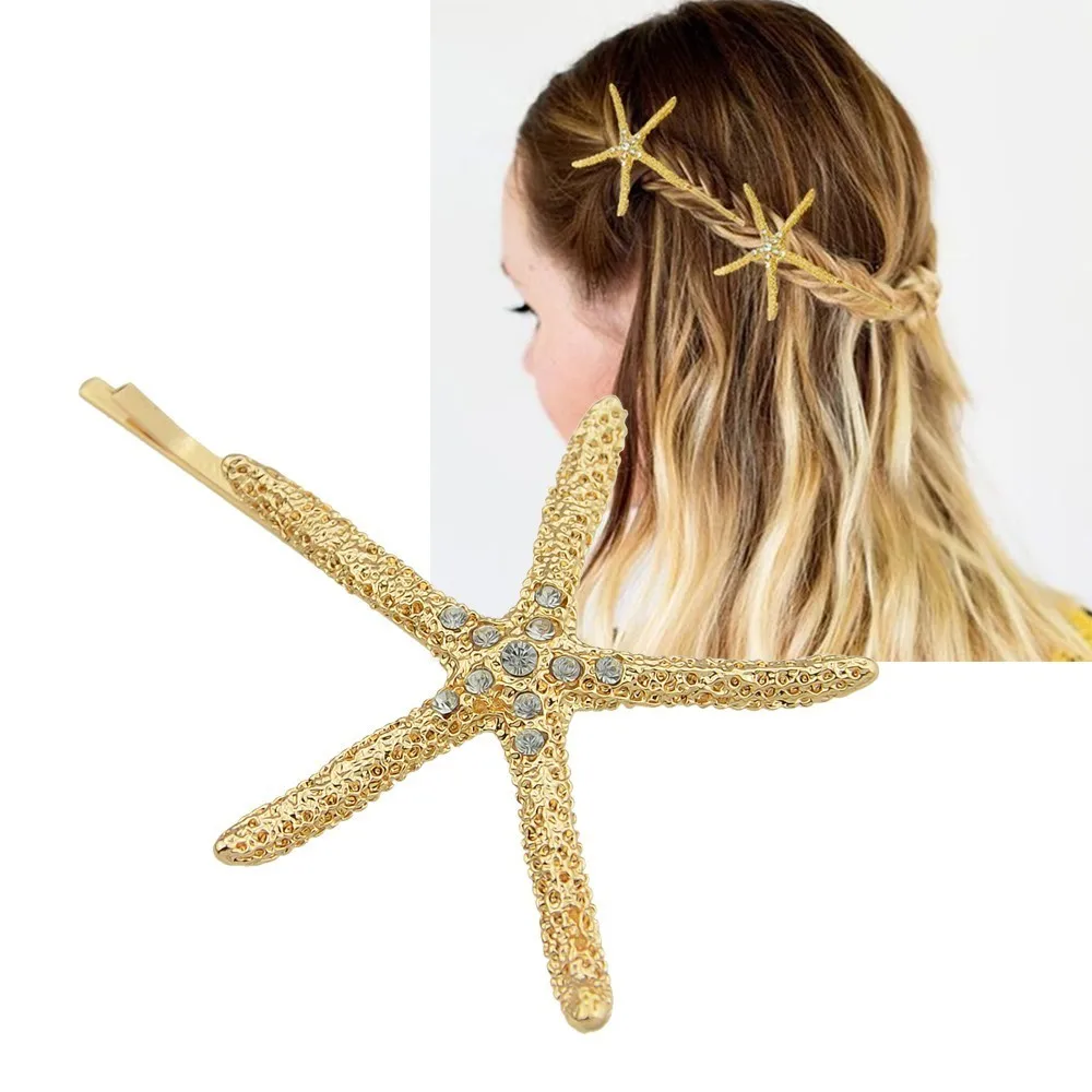Минималистский Стиль Украшения для волос золото-Цвет с горный хрусталь Морская звезда Форма заколки для волос одежда Украшения для волос для Для женщин Интимные аксессуары