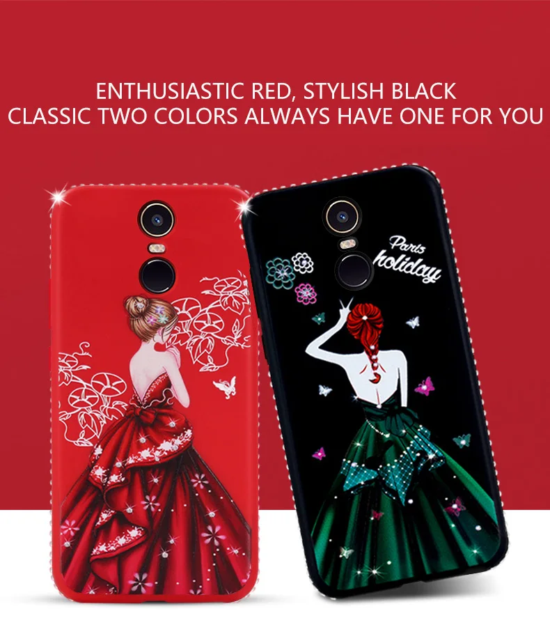 Phone Case For Redmi 4 / 4 Pro / 4A / 4X / Remi 5 /Remi 5Plus / 5A / Note 3 / Note 4 / Note 4X / Note 5/ Note 5A Fashion Crystal Diamond Sexy Dress Girl Painted Back Cover For Note4X Cases Bag Shell