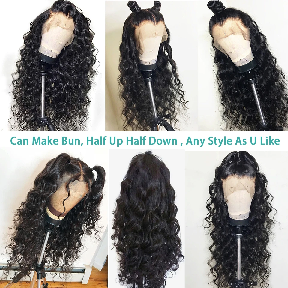 Allove свободный глубокий парик, 100% человеческие волосы, очень мягкие, могут быть окрашены или отбелены, легко расправлены или свернуты в любой стиль, который вам нравится