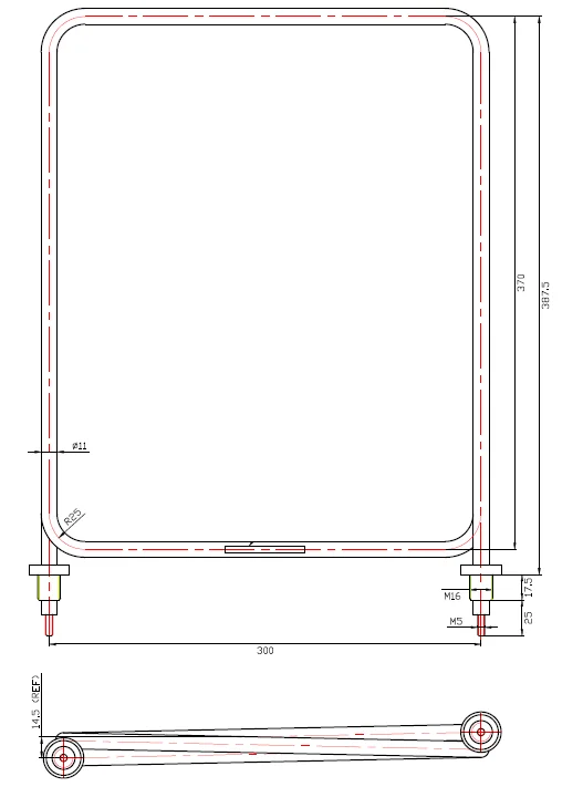 3. Размер: 387mmx300мм (длина трубки)