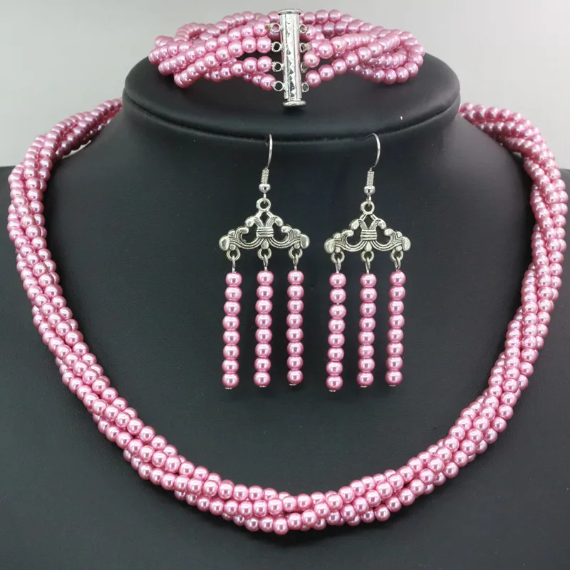 Амулеты многоцветная оболочка 4 мм круглые бусины 4 ряда ожерелье браслет серьги ювелирный набор элегантные драгоценности из искусственного жемчуга 18 "B3458