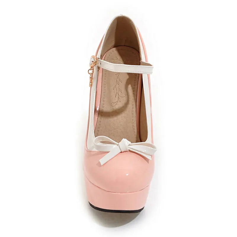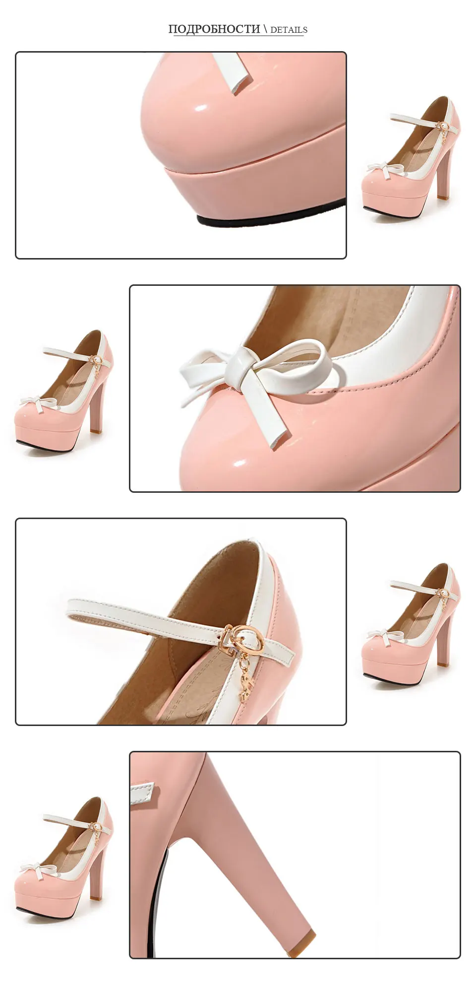 Fanyuan/женские туфли на высоком каблуке и платформе с бантом-бабочкой и ремешком на щиколотке; Милые туфли для невесты/принцессы; Вечерние туфли-лодочки на высоком каблуке