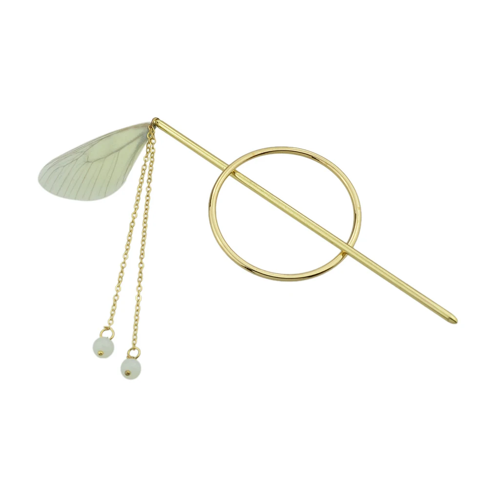 Милые Прелестный Стиль золотого цвета с кружевами в виде бабочек и Длинных Цепочек для волос для женщин Мода украшения для волос