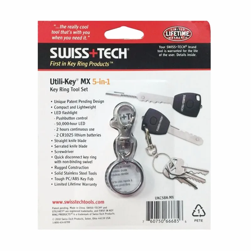 SWISS + tech 5 в 1 Utili-ключ кольцо многофункциональный инструмент с светодиодный фонариком шуруповерт нож лезвие