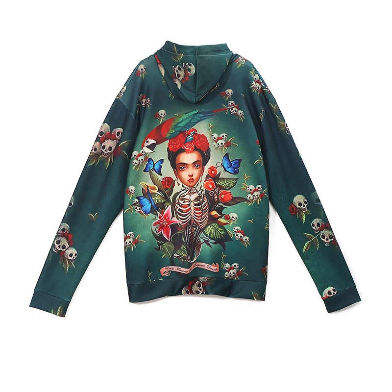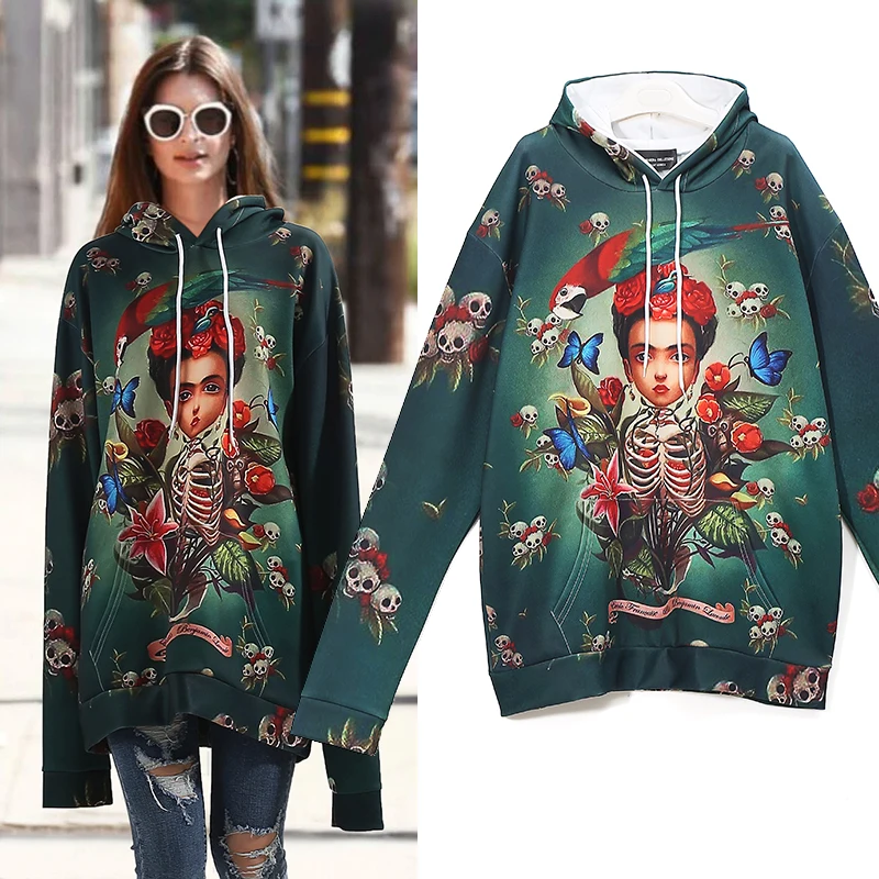 New 2018 Women Green Hoodie Cartoon Printed Pullovers Sweatshirt Girls Long Sleeve Hip Hop Streetwear Sweatshirt Pull Femme 3343