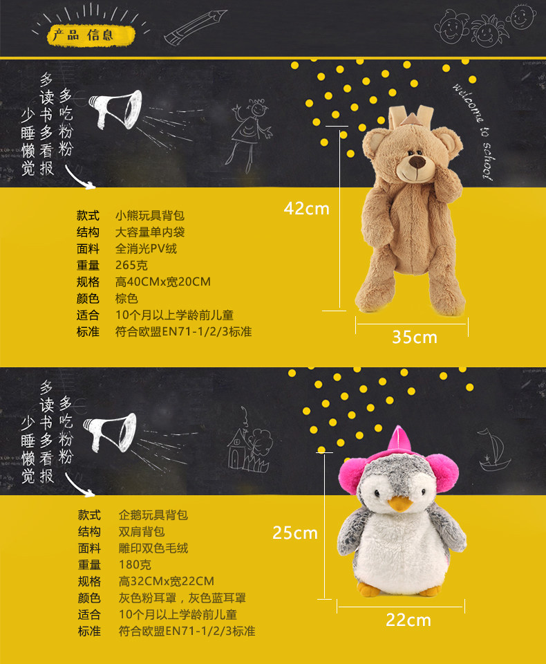 Candice guo, плюшевая игрушка, мягкая кукла, мультяшный медведь, кенгуру, рюкзак с пингвинами, школьный рюкзак, сумка на плечо, сумка, посылка, подарок, 1 шт.