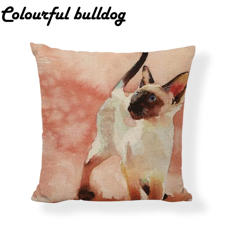 | Мультяшный чехол для подушки с кошкой, национальные костюмы, стол, золотая рыбка, очки, узор, автомобиль, гостиная, диван, украшение для дома, наволочка |