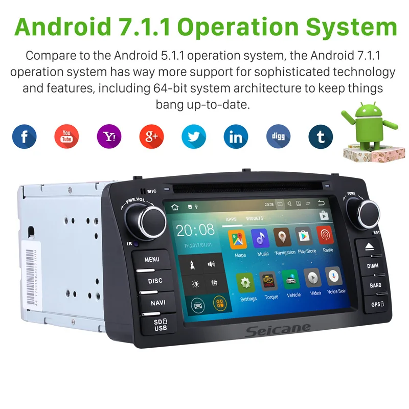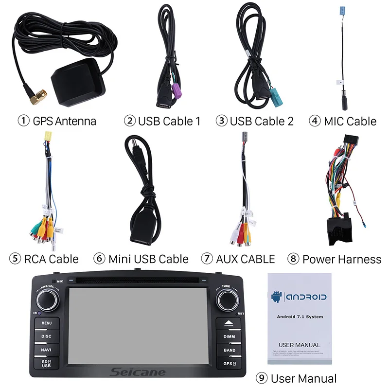 Seicane 2Din Android 7,1 Автомобиль Радио Стерео gps навигации мультимедийный плеер для Защитные чехлы для сидений, сшитые специально для Toyota Corolla E120 BYD F3 2006-2012