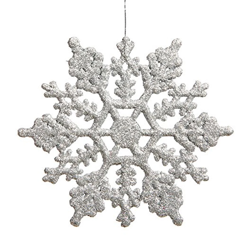 12pcs Plastic Snowflake Decorations 10cm Christmas Tree Snowflakes Pieces for Christmas Ornaments (Silver)