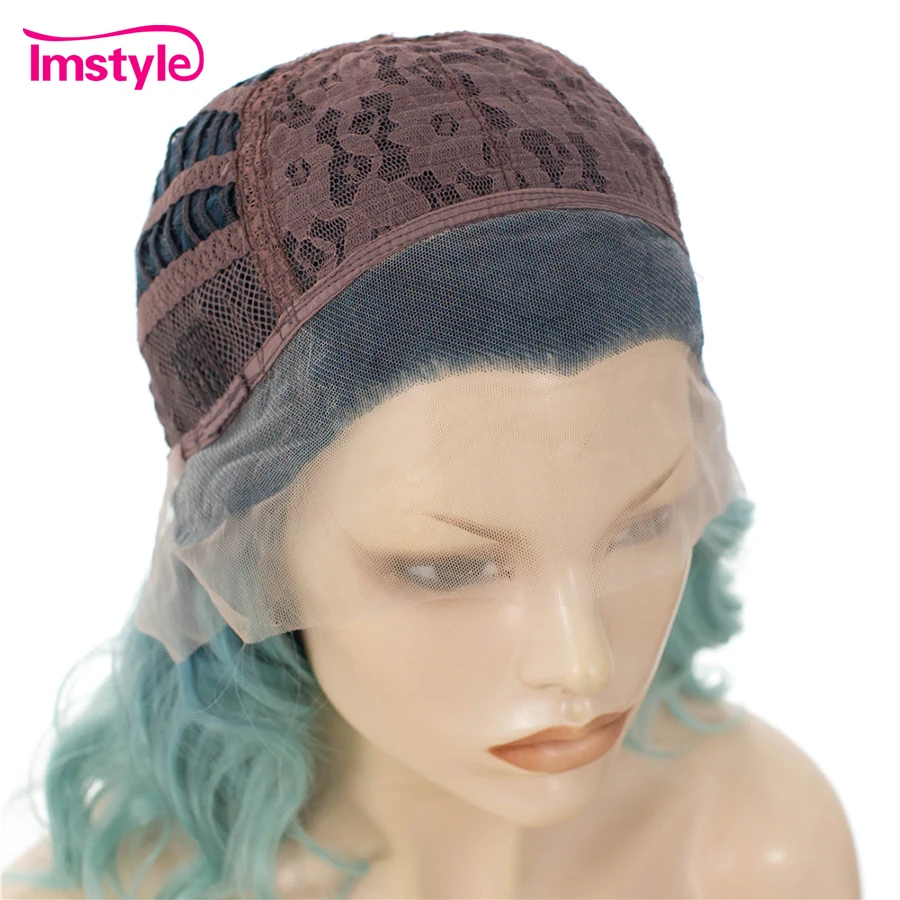 Imstyle зеленый парик короткие синтетические кружевные передние парики для женщин глубокий волнистый кружевной передний парик Термостойкое волокно Косплей вечерние парики