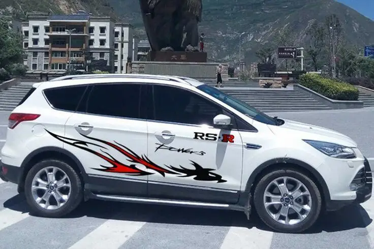 Размещение наклеек: сбоку кузова автомобиля