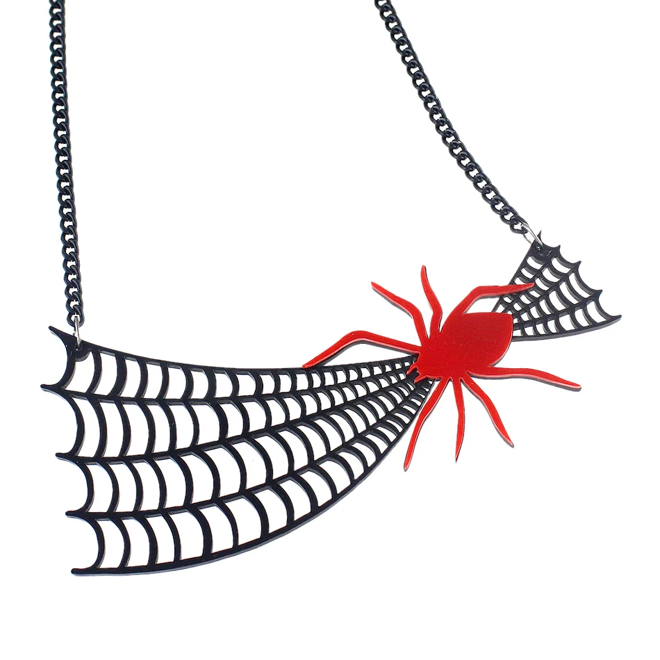 Готический стиль черный цвет цепь с пауком паутина красный паук воротник заявление ожерелье аксессуары для женщин модные украшения