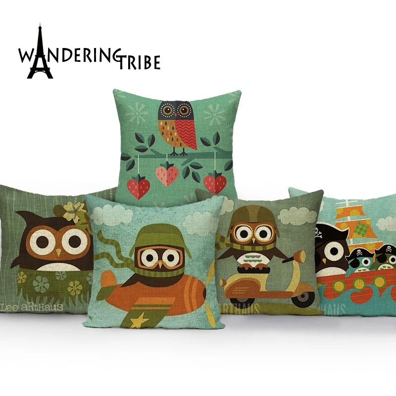 2016 Квадратные Цветные домашние подушки декоративные Чехлы для автомобилей милые совы Мультяшные ветви чистый мягкий льняной костюм almohada N(378)