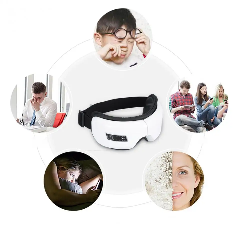 Очень удобный и расслабляющий массажер для глаз включает в себя четыре режима массажа: Воздушное давление, инфракрасное нагревание света, частоту вибрации и музыку. Он может стимулировать кровообращение, избавляет от нервных ощущений, уменьшает появление морщин, мешков для глаз и темных кругов. При использовании вы успокаиваетесь и снимаете стресс. Идеально подходит для людей, страдающих близким зрением, дальним зрением, слабым зрением и бессонницей, также подходит для тех, кто задерживается поздно, чрезмерно использует глаза.