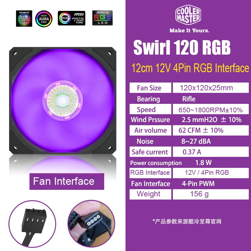 MF120R RGB Интерфейс RGB: 12 В/4pin Интерфейс источника питания: 12 В/4pin Совместим сAsus Aura, ASRock RGB, Gigabyte Fusion, MSI RGBМатеринские платы RGBПрограммное управление RGB