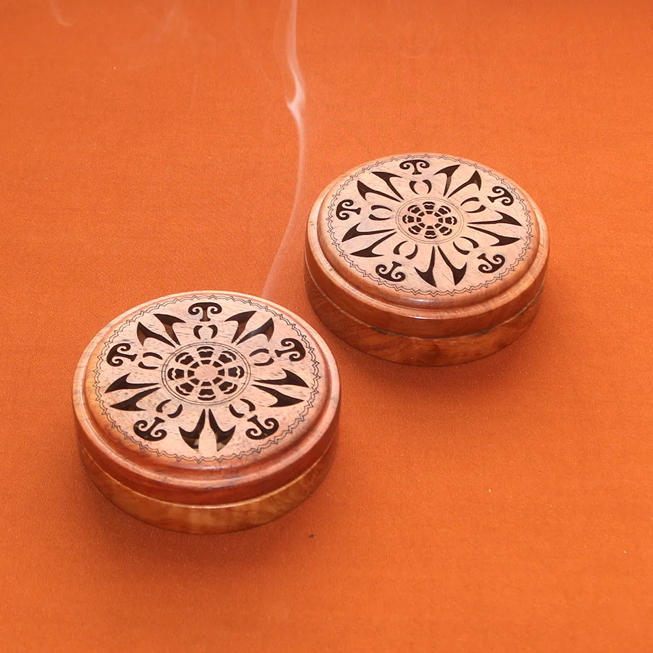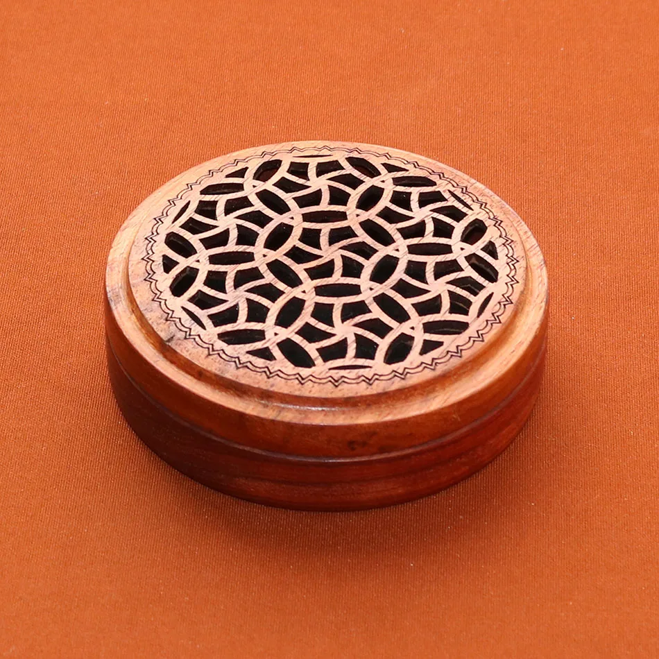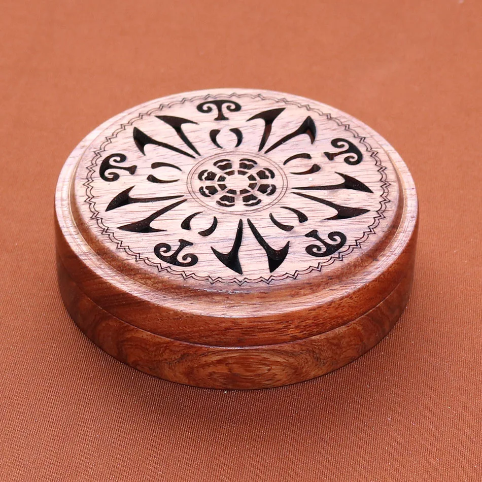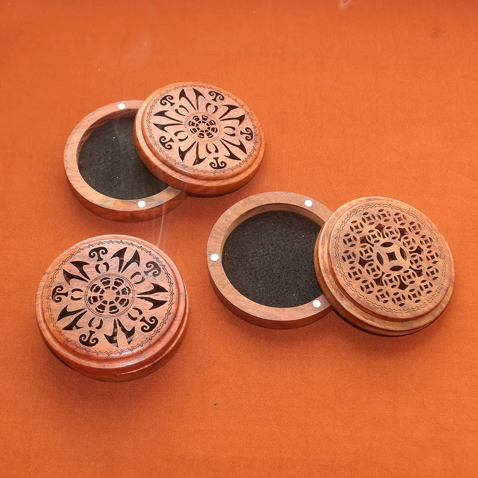Бесплатная доставка Оптовая продажа 2-4Hour круглый палисандр горелка коробка с магнитом для катушки ладана полые резьбы по дереву ценсер
