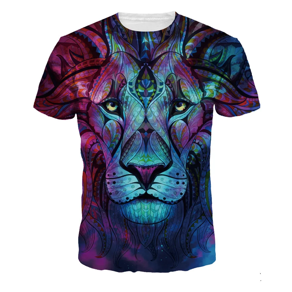 Новая футболка с изображением льва, женская футболка с коротким рукавом, с круглым вырезом, с принтом в виде животных, 3d футболка Harajuku, летняя футболка в стиле хип-хоп, женская одежда