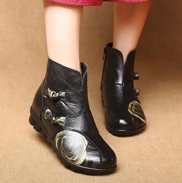 RUSHIMAN/женские ботильоны из натуральной кожи; Ботинки ручной работы на плоской подошве; Удобная повседневная обувь в народном стиле; Женские зимние ботинки
