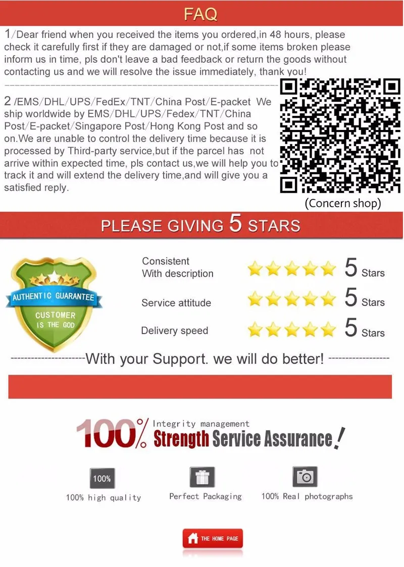 Внимание: в соответствии с таможенной правилами клиенты из Российской Федерации и Южной Кореи должны предоставить полное имя 3 слов при оформлении заказа. Или мы не можем отправить его.