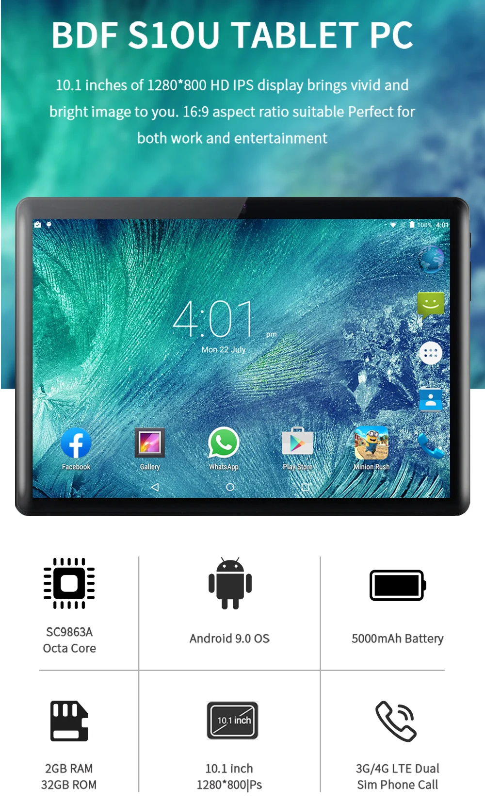 Версия ОС: Android 9,0Процессор: SC9863A, ВосьмиядерныйОЗУ: 2 Гб (в системе Android используется часть памяти)Wi-Fi: 802,11 b/g/nBluetooth , FM, sim-карта функция телефонного звонкаGoogle Play Adobe Flash2G сеть sim-карты 850/900/1800/1900 МГцСеть sim-карт 3G WCDMA2100MHz4G LTE NetworkB3B7 B205,0 мегапиксельная задняя камера + 2,0 мегапиксельная фронтальная камераРазрешение видео: спереди/сзадиМикрофон и динамикРазмер батареи: 5000 мАчЯзыки: индонезийский, малайский, датский, немецкий,Английский,Испанский, Филиппинский, итальянский, венгерский, голландский, греческий, турецкий, арабский, тайский, норвежский bokml,Дойч, Hrvski, Italiano , Latviesu , Lietuviu , Nederland,Русский, Словенская, Романа,Portugues, Polski Francais ,Suomi ,Cestina, svensk, Tieng Viet, иврит,Украина