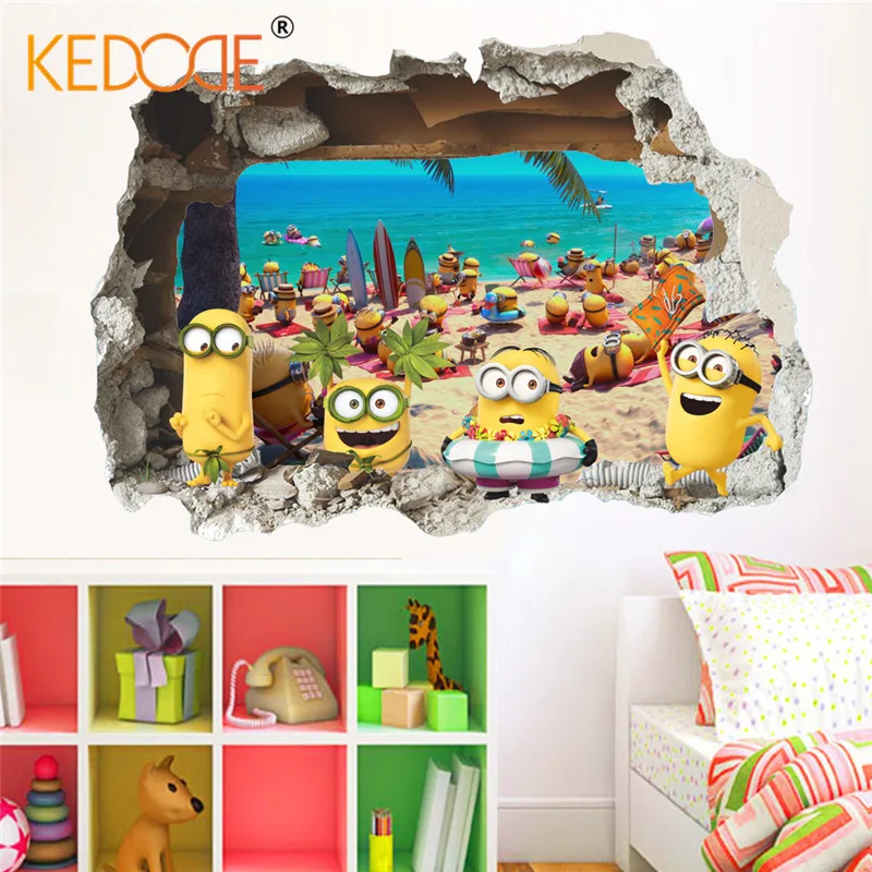 Желтый Детский праздник Пляж 3d наклейки на стены треснутые окна детские комнаты спальня милые виниловые наклейки художественные наклейки на стены