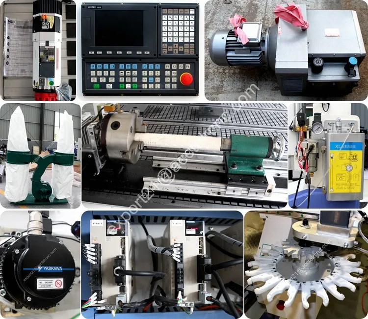 2. 4 оси фрезерный станок с ЧПУ для Основные Запчасти поставляются все от всемирно известных поставщиков, как, например, система управления фасонно-фрезерного станка Syntec, Yaskawa серводвигателя, Sampo редуктор, HSD воздушного охлаждения шпинделя, Delta Инвертор, все компоненты от мировых лидеров. Таким образом обеспечивается 4 оси фрезерный станок с ЧПУ имеет хорошую performacne при работе.