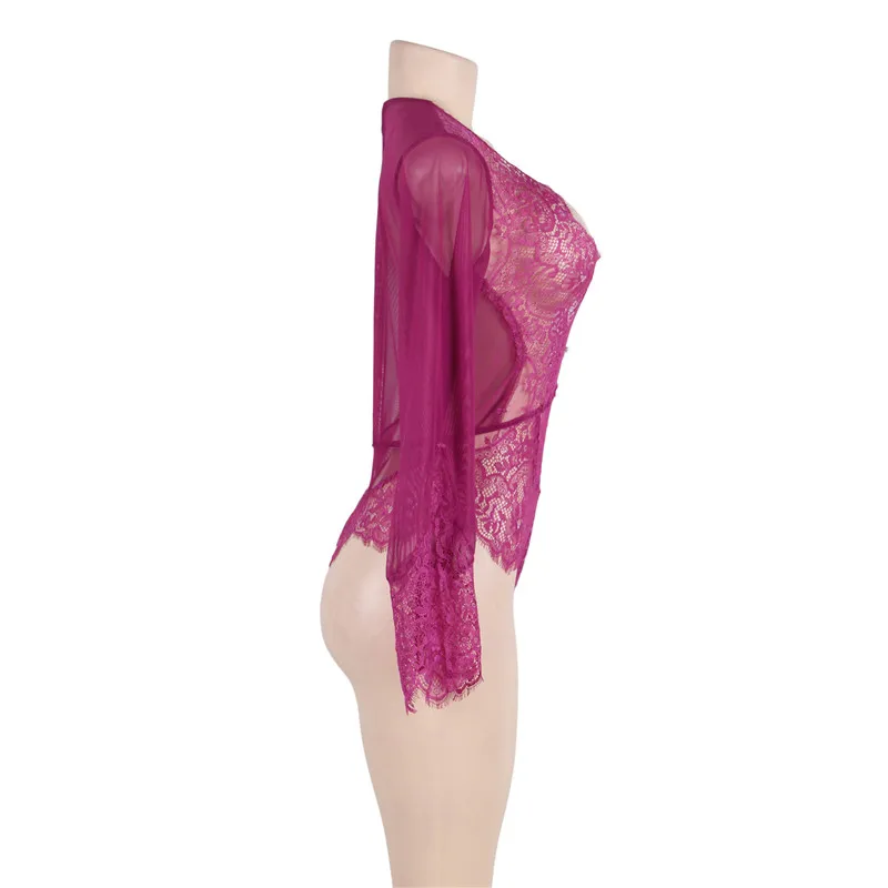 Comeondear/Боди размера плюс с длинными рукавами и прозрачным кружевом, сексуальное Сетчатое боди с v-образным вырезом, Летние Короткие вечерние комбинезоны