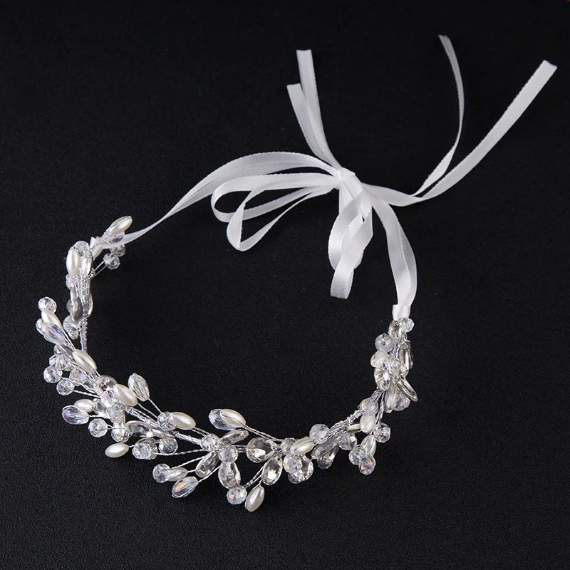 Описание: ручной работы Shinny Кристалл Свадебные головные украшения для волос цветок жемчужная лента повязка для женщин Свадебные украшения для волос