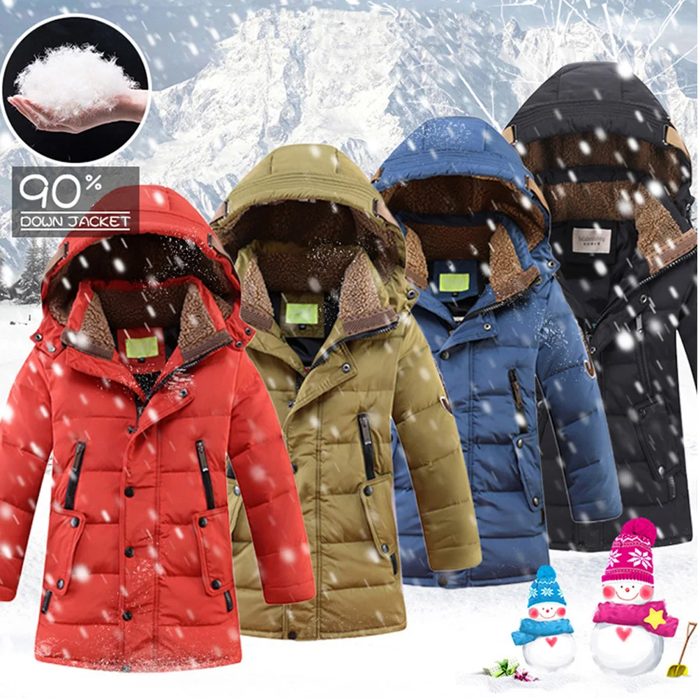 Новинка 2021 года, зимнее пальто для мальчиков от 5 до 15 лет, белая зимняя куртка на утином пуху для мальчиков ветрозащитная верхняя одежда с капюшоном для детей, теплая одежда