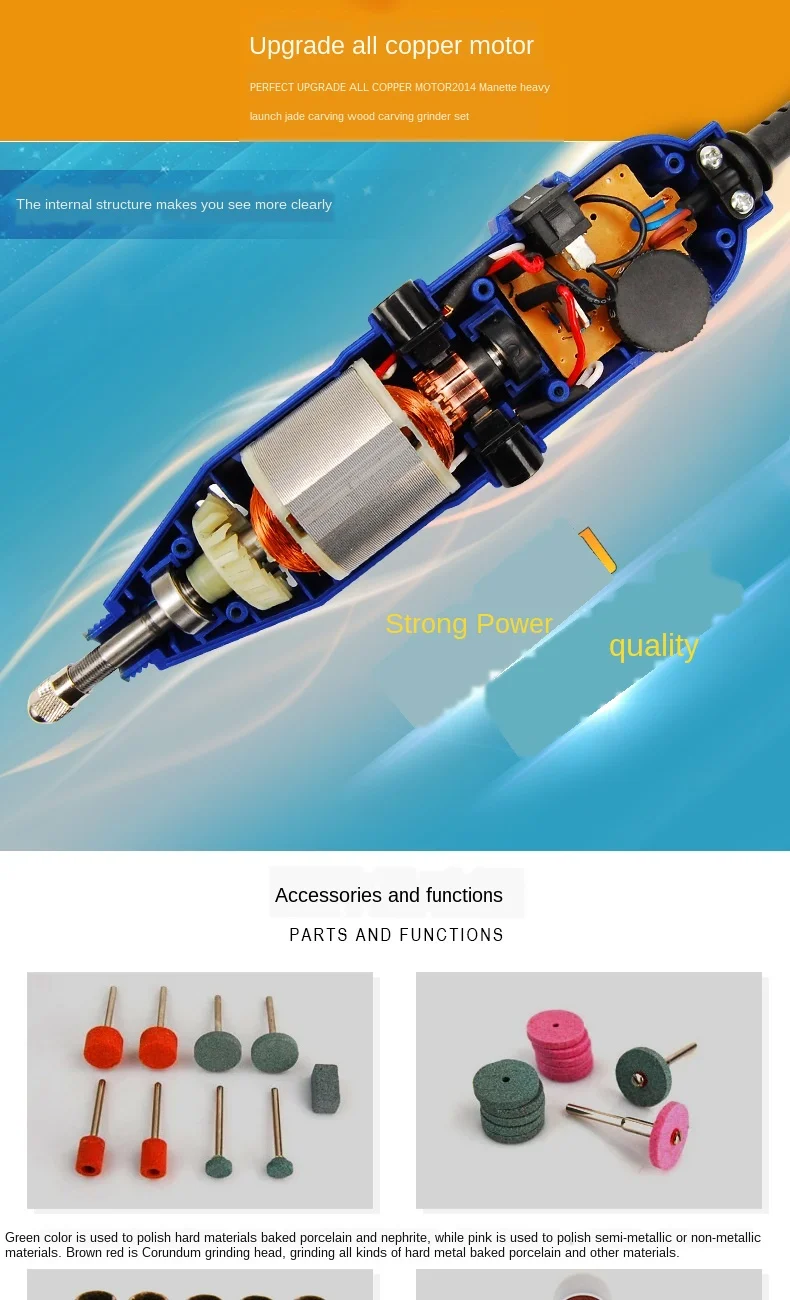 Классификация спецификации продукта: 130 Вт электрическая шлифовальная машина стандарт 130 Вт электрическая шлифовальная машина + гибкий Вал + шлифовальная игла 211 шт. набор электрической шлифовальной машины 3 211 шт. набор электрической шлифовальной машины 4 211 шт. набор электрической шлифовальной машины 5 211 шт электрическая шлифовальная машина набор 6