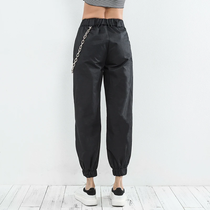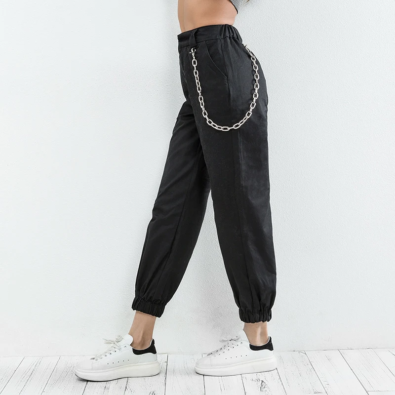 Брюки-карго женские хлопковые спортивные штаны 2018 Streetwear одежда с высокой талией брюки черный Панк случайная свободная одежда мода новая