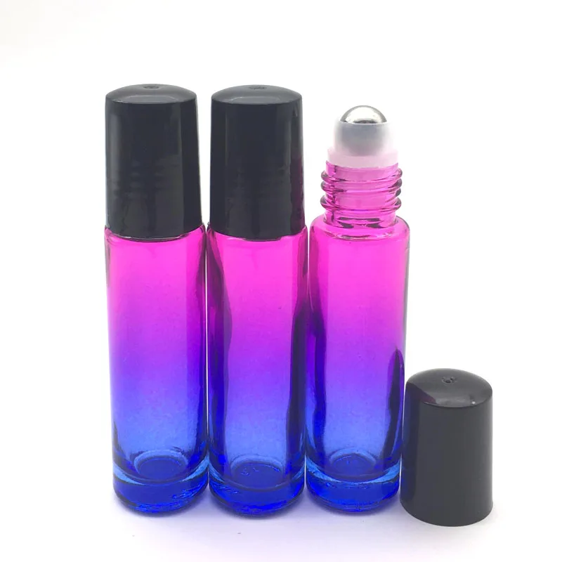 10 мл градиентный красно-синий рулон на стеклянной бутылке пустой аромат парфюмерное эфирное масло 10cc роликовая бутылка черная пластиковая крышка