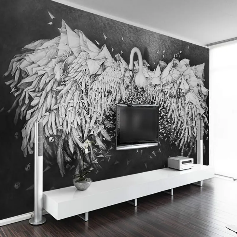 3D стереоскопическая настенная рельефная Лебедь обои для бара КТВ ресторана фон настенная живопись обои для украшения