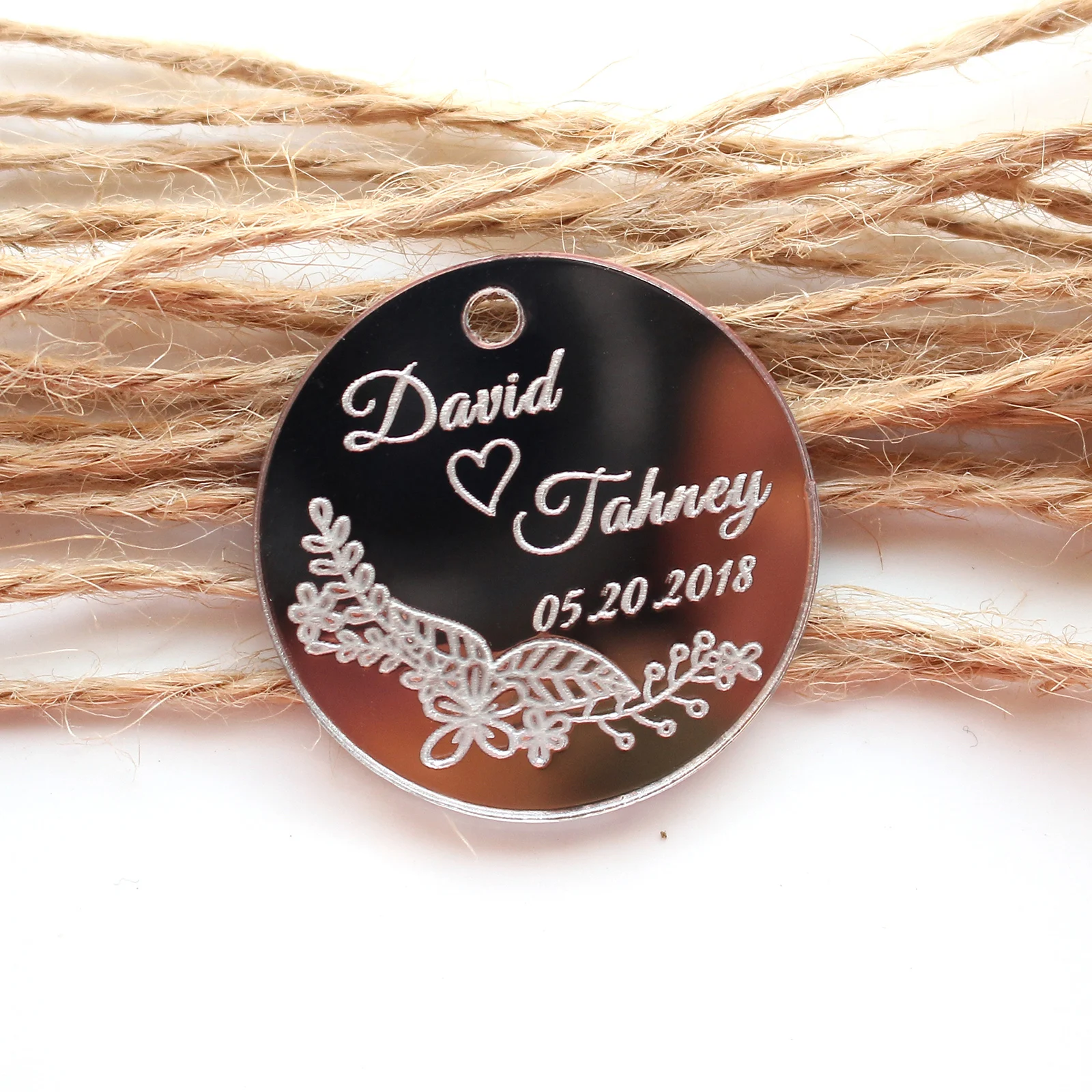 50 * персонализированные серебряные зеркальные круглые украшения для крещения невесты, украшения для монет, украшения для стола, круглые бирки для свадьбы и помолвки