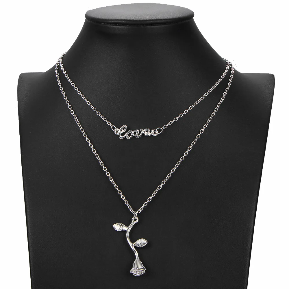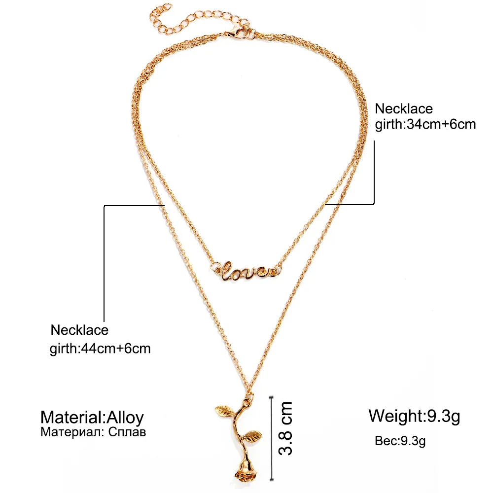 2018 новое ожерелье золотой цвет ручной 2 слойной цепи Металл любовь и розы колье подвески длинные полосы ожерелье женские украшения XL076