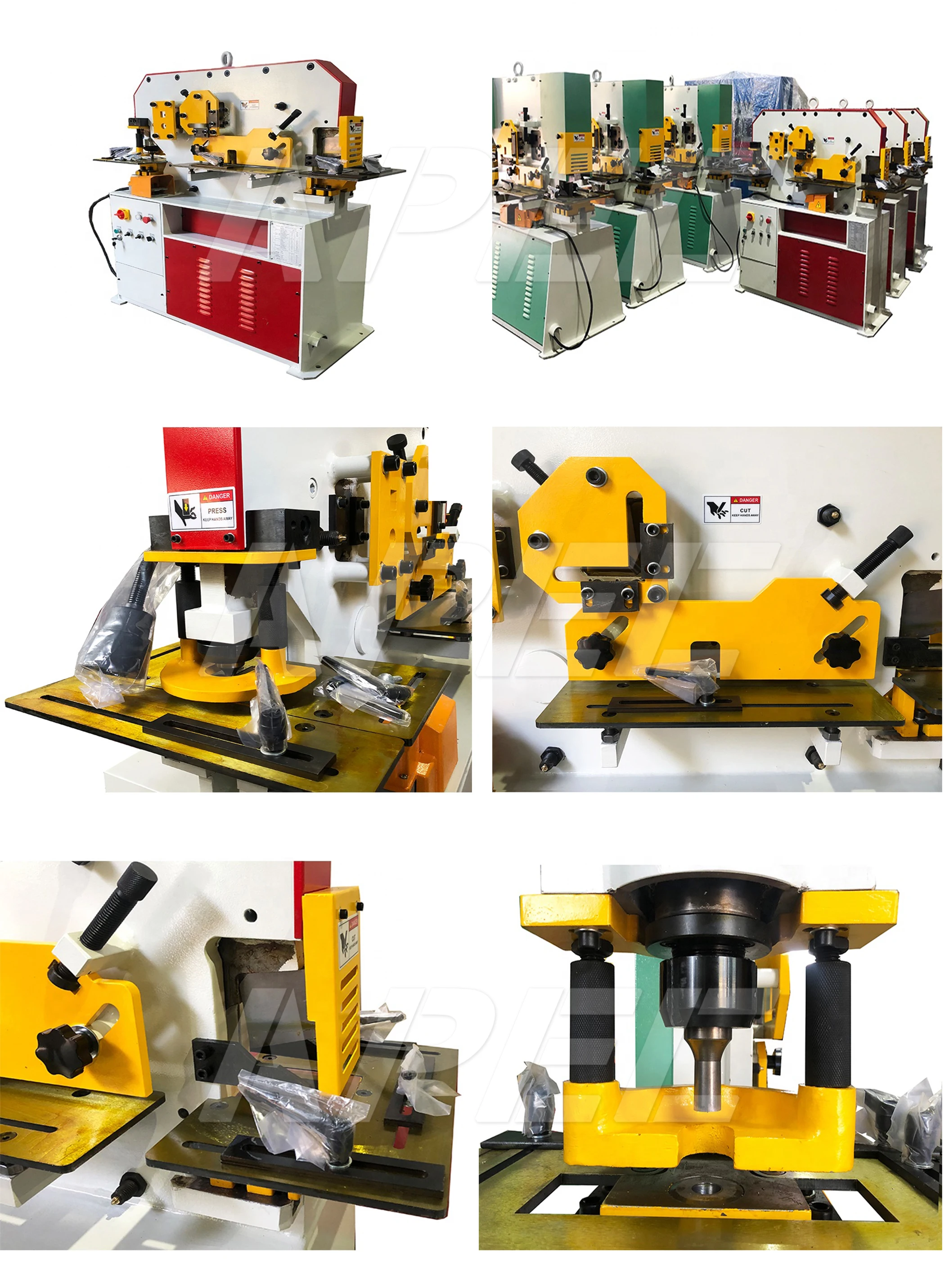 Бренд АТЭС AIW серия Ironworker имеет несколько функций, в том числе: Пробивка всех видов отверстий (круглое отверстие, квадратное отверстие, Продолговатое отверстие), перфорация жалюзи, штамповка стальных пластин, штамповка плоских прутков, угловая стальная Пробивка, c-канальная Пробивка, h-пучковая Пробивка, I-beam Пробивка, профильная стальная стрижка (канальная стрижка, I-beam стрижка, Круглая/квадратная стрижка, плоская стрижка, Т-образная стрижка, стальная стрижка, угловая стальная стрижка), вырубка, пресс-тормоз, угловая стальная вырубка, изгиб, вырубка труб. Он поставляется в стандартной комплектации: быстросменная Соединительная гайка и втулка, прижимная рукоятка со шкалой, электронный задний манометр, измерительный стол с остановками, пробивая базовый стол, защитные щитки и многое другое. Мы можем спроектировать любые специальные инструменты в соответствии с вашими требованиями к изготовлению металла.