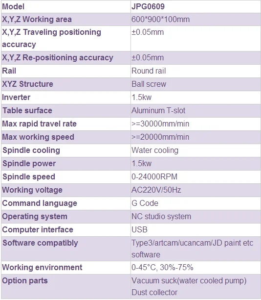 4.Шпинделя:1,5 кВт с водяным охлаждением шпинделя, низкий уровень шума, vigirous большая сила резки,