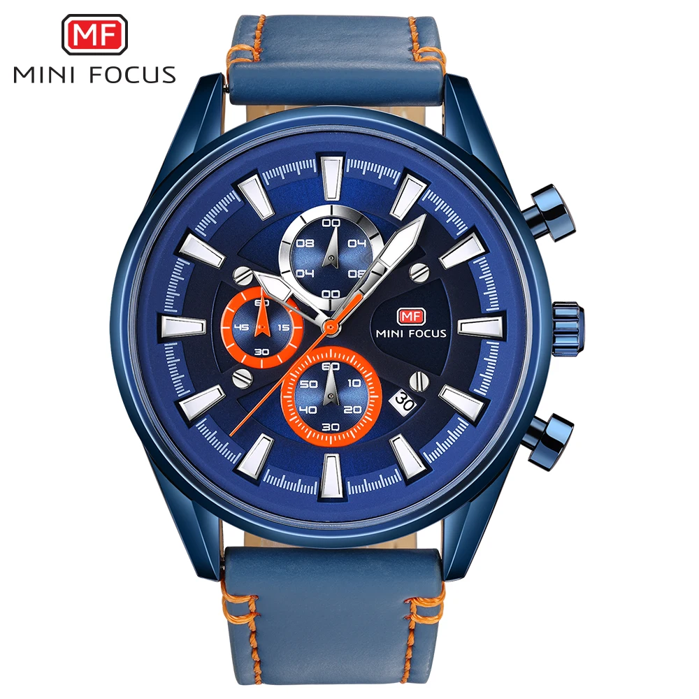 Бренд MINIFOCUS Роскошные мужские часы Chrono Movade Мужские Аналоговые кварцевые часы мужские кожаные армейские военные часы