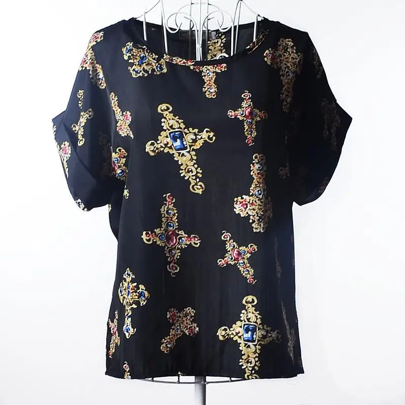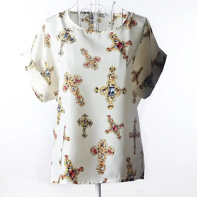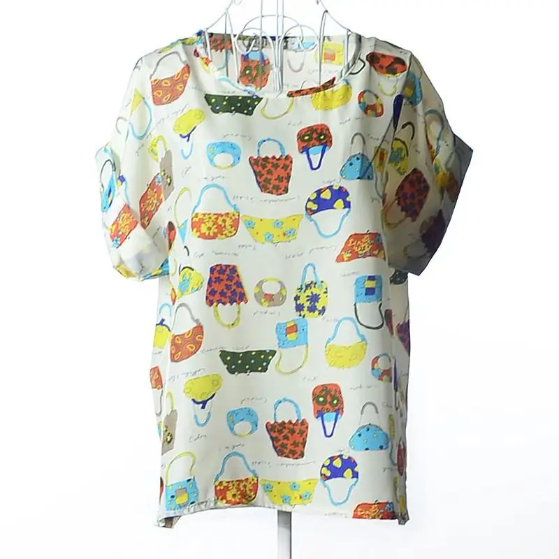 Новые 2016 женские блузки Горячие Продажи свободный животный принт шифоновая блузка Топы осень-лето точка/сердце