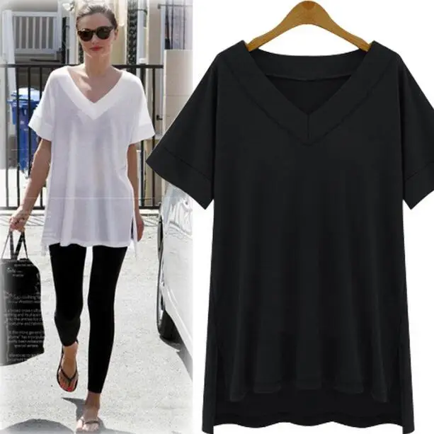 Летние хлопковые женские асимметричные топы, сексуальные свободные простые футболки, женская одежда белого и черного цвета размера плюс, большие размеры 5XLAH894