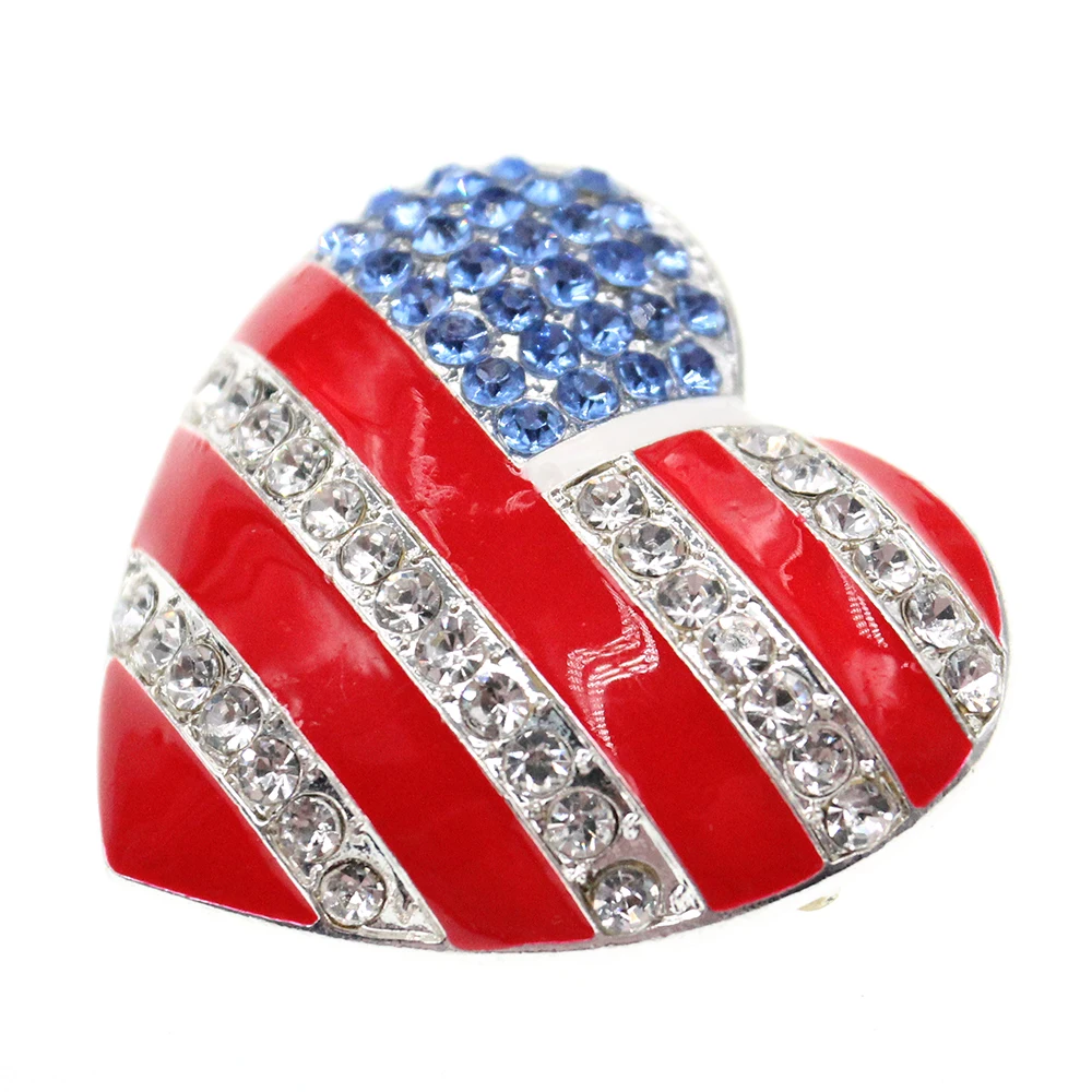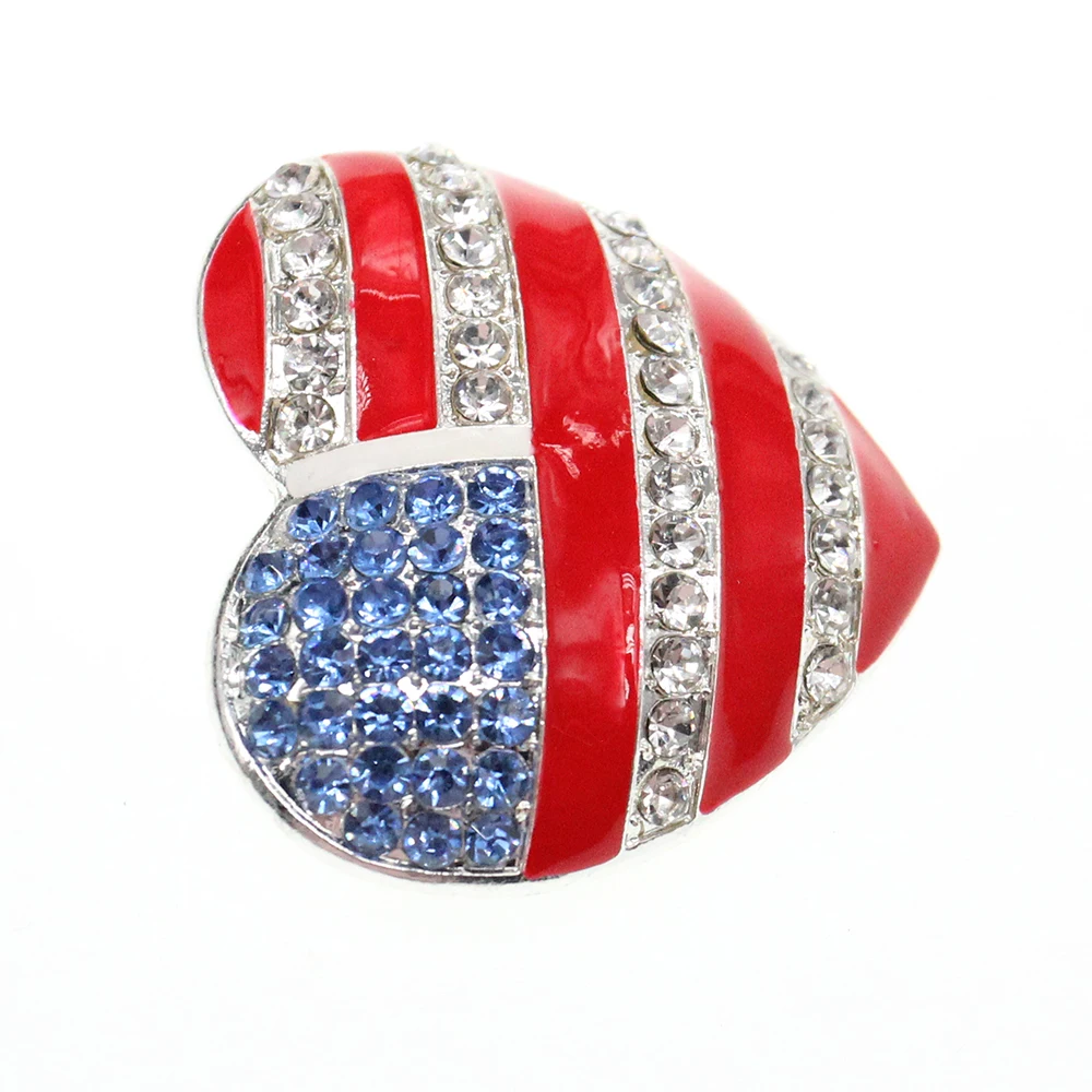 20 шт./лот кристалл в форме сердца Эмаль Красочные американский флаг брошь