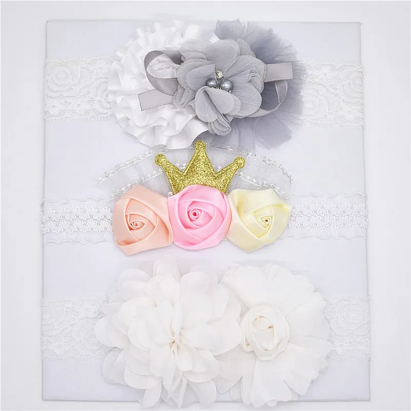 Шифоновая Кружевная повязка на голову da flor de cetim fita Flor головная повязка para bebê infantil meninas